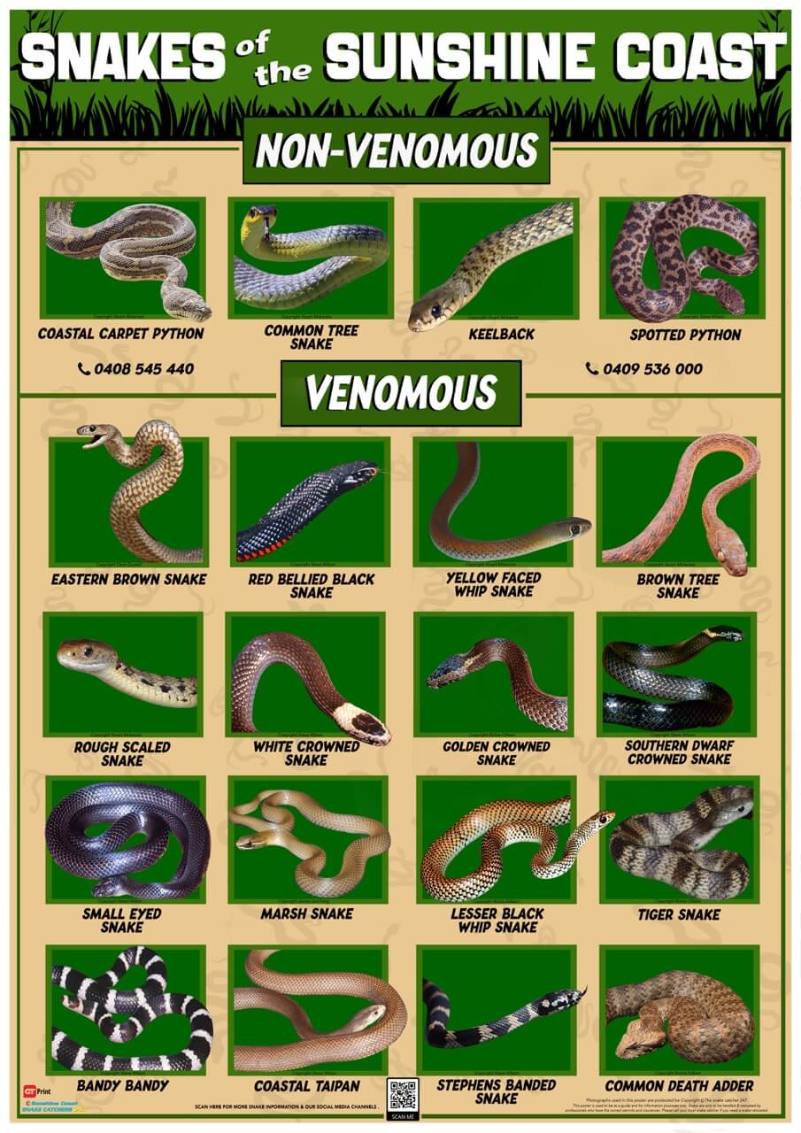 This Poster provides general information and quality photographs of all snake species found on the Sunshine Coast. Cost does not include shipping.
