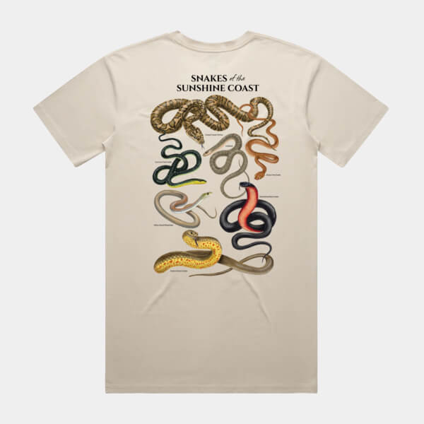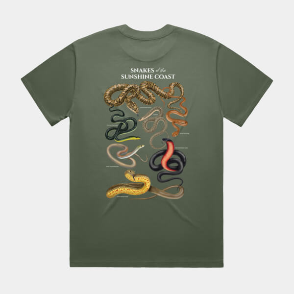 Unleash your inner wildlife enthusiast with the all-new “Snakes of the Sunshine Coast” T-shirt collection. We have a range of colours and sizes to fit the whole family! Made with super comfy material and perfect for showing off your love for local wildlife, grab yours today! Available now in Size 4,6,8,10,12!!